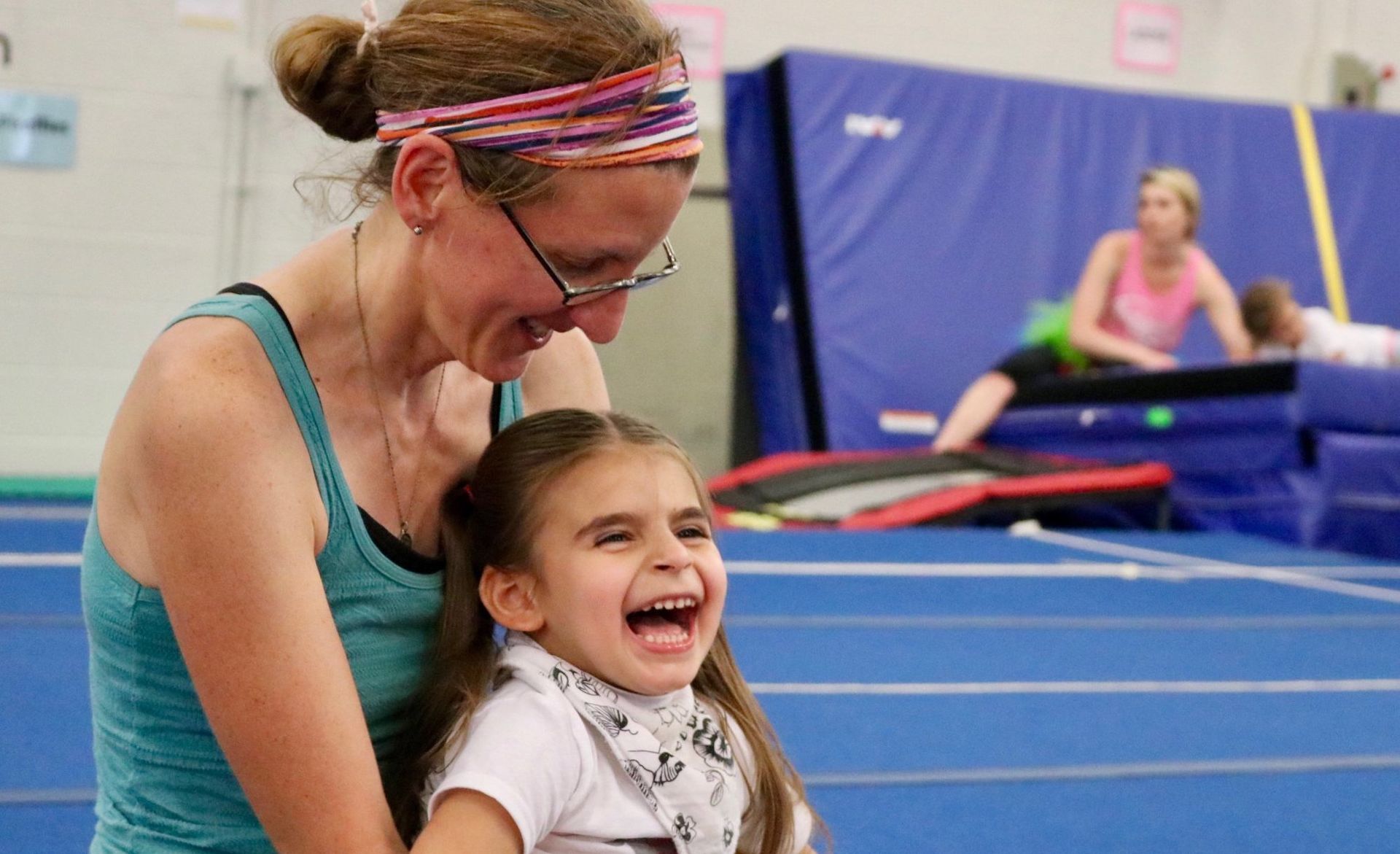 Gymnasts with physical or intellectual disabilities learn foundational skills on the vault, bars, beam and floor in a step-by-step, individualized process. Our volunteers work one-on-one with the athletes and help each athlete work at his or her own pace. Volunteers focus on helping the athletes improve motor skills and encourage them to follow instructions and make new friends. Adaptive gymnastics runs in sessions during the Fall, Spring, and Summer.